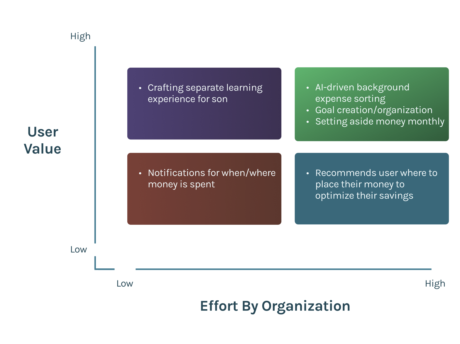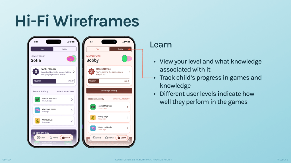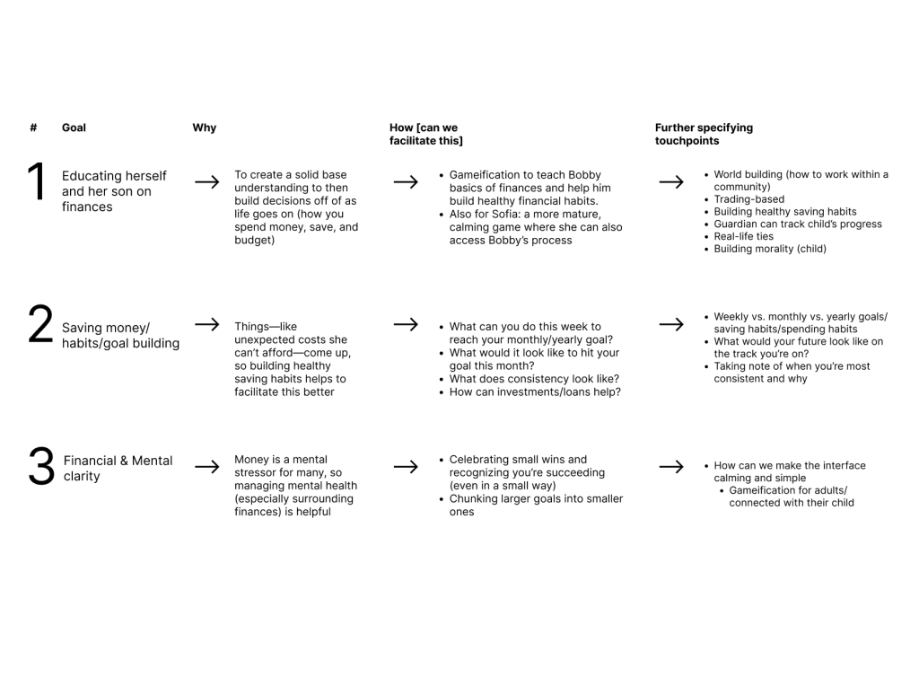 Throughout these steps, I continually aligned my work to our project mission statement, “Empowering families to build confidence and a secure financial future by turning everyday moments into engaging experiences that strengthen mental well-being and financial habits.”