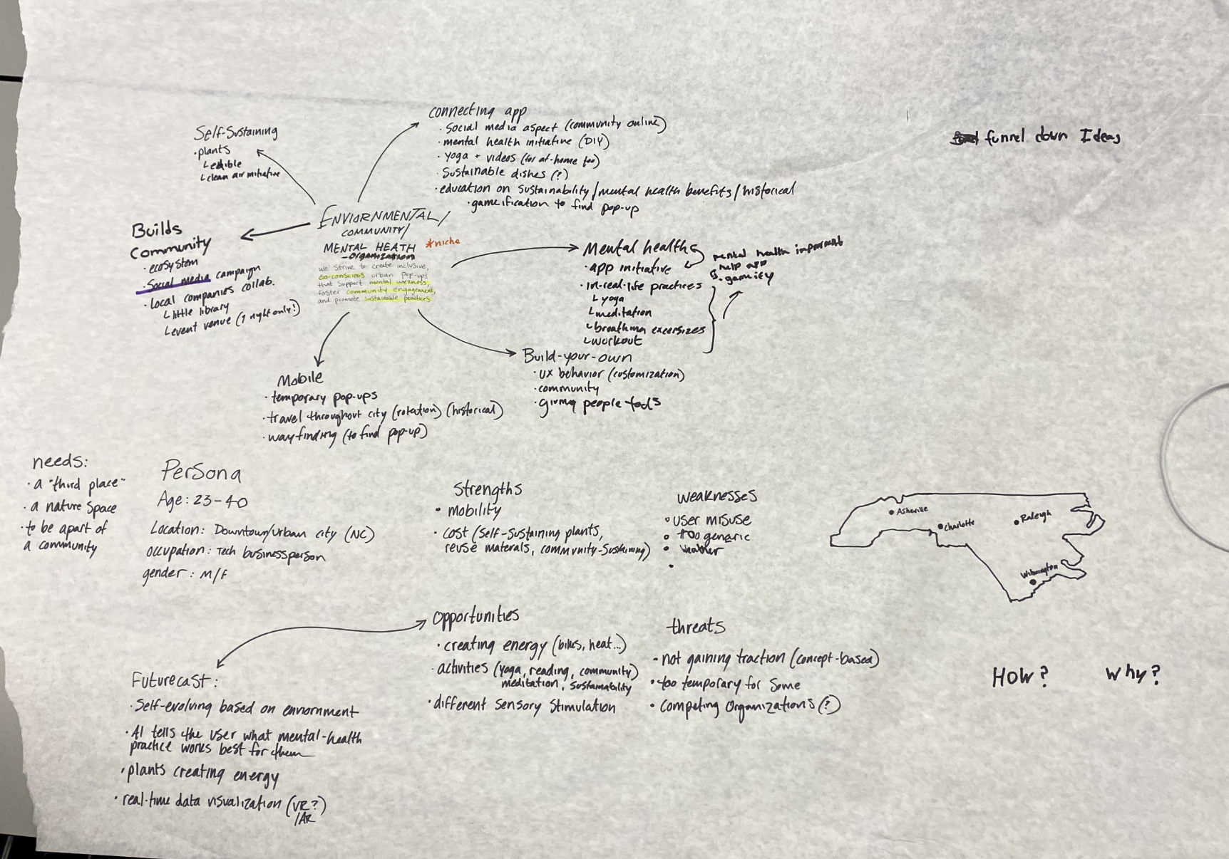 By utilizing research strategies, such as SWOT, competitive analysis, and the Kano method, my teammate and I identified mental wellness as a condition that warrants support. My initial research indicated that community resources were underutilized.